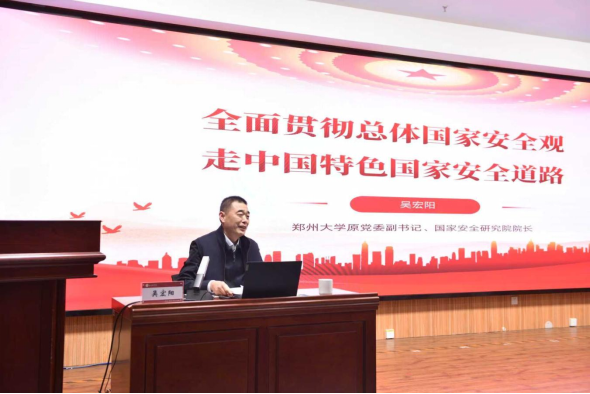 为深入学习贯彻习近平总书记关于总体国家安全观的重要论述,更加系统、深入、准确地理解和把握其科学内涵、核心要义与实践要求,本次会议邀请郑州大学原党委副书记、国家安全领域知名专家吴宏阳教授,作题为《全面贯彻总体国家安全观 走中国特色国家安全道路》的专题辅导报告。吴宏阳教授围绕总体国家安全观,结合习近平总书记最新重要讲话精神,从总体国家安全观提出的时代背景、总体国家安全观的深刻内涵、党的二十大以来总体国家安全观重大部署和推进、推进国家安全治理体系与能力现代化、高校践行总体国家安全观的使命与行动五个方面,作了一场精彩报告。