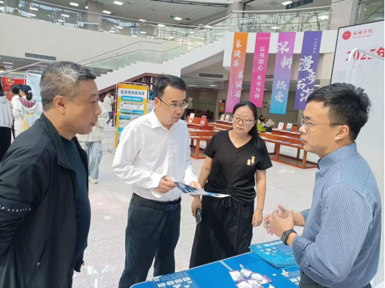期间,副校长张银堂来到活动现场参观指导,他深入展位与读者和数字资源供应商代表直接交流,实地了解师生的学习需求。张银堂指出,这种内容丰富,形式多样的资源推介活动,形式贴近教学科研、内容实用,读者参与度高,希望图书馆进一步加强数据库资源建设,多征集免费资源,充分发挥图书馆作为学校文献信息资源中心的作用,进一步助力教学科研,助推学校高质量发展建设。