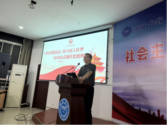 活动伊始,张涛以“时代呼唤:我们为何在此?”为切入点,深刻剖析了当前时代背景下科技发展与国家建设的紧密联系。他指出,在全球科技竞争日益激烈的今天,我国正处于从制造大国向制造强国迈进的关键时期。解决35项“卡脖子”技术问题,对于推动产业升级、提升国家核心竞争力具有重要意义。广大师生身处这一伟大时代,肩负着科技报国、产业兴邦的历史使命,必须立足本职,勇攀科技高峰。