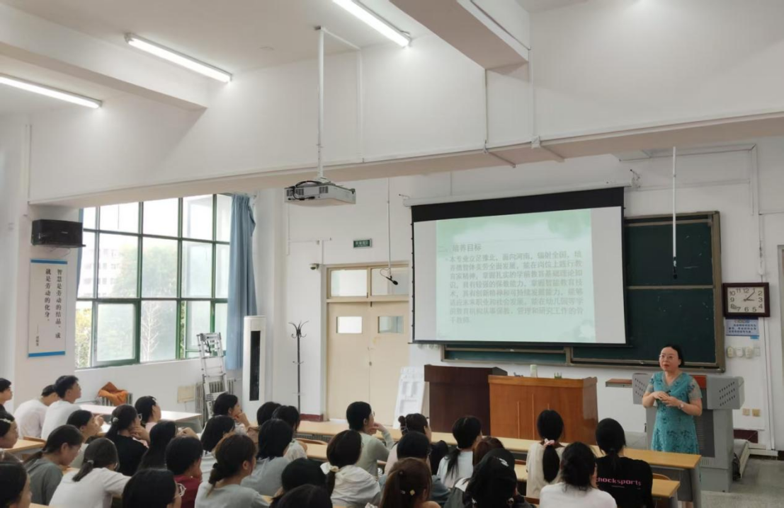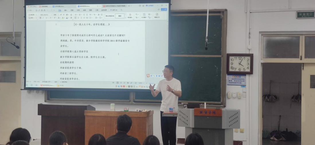 学院还特邀2011级学前教育专业优秀校友周海康回校,为新生进行生涯规划主题分享。他结合自身成长经历与反思,分享了宝贵的学习与实践经验,鼓励学弟学妹们尽早确立目标,努力提升学历,练好实践本领,不断拓宽眼界,自信自强、坚持不懈向着心中的目标奋力前行。