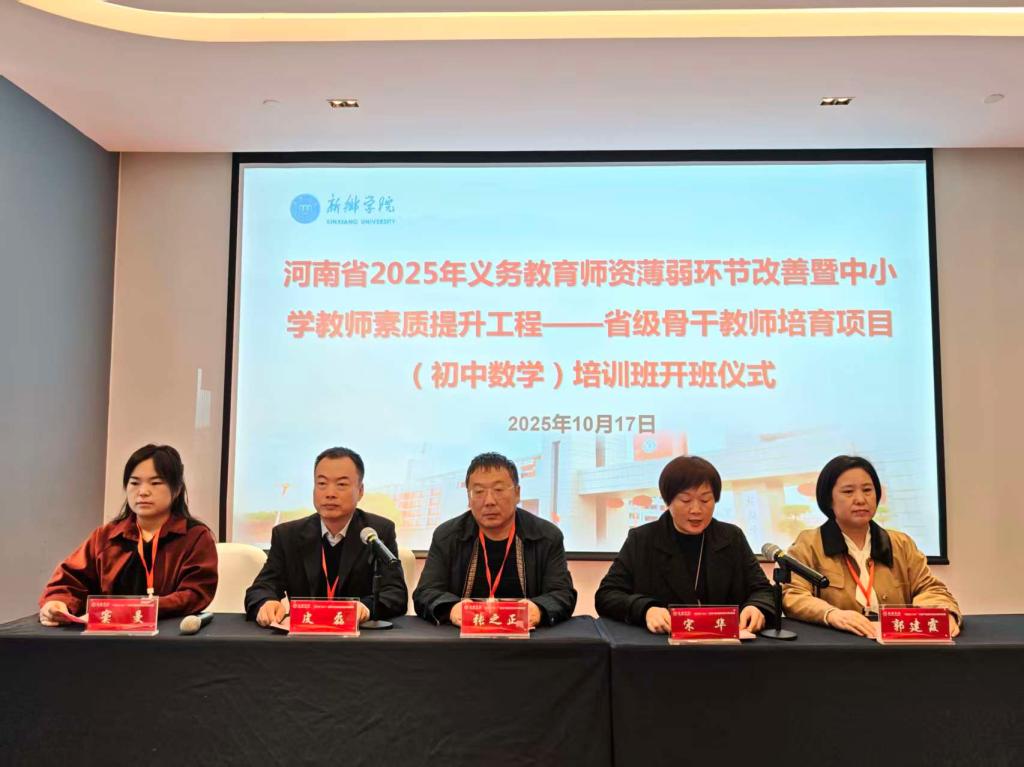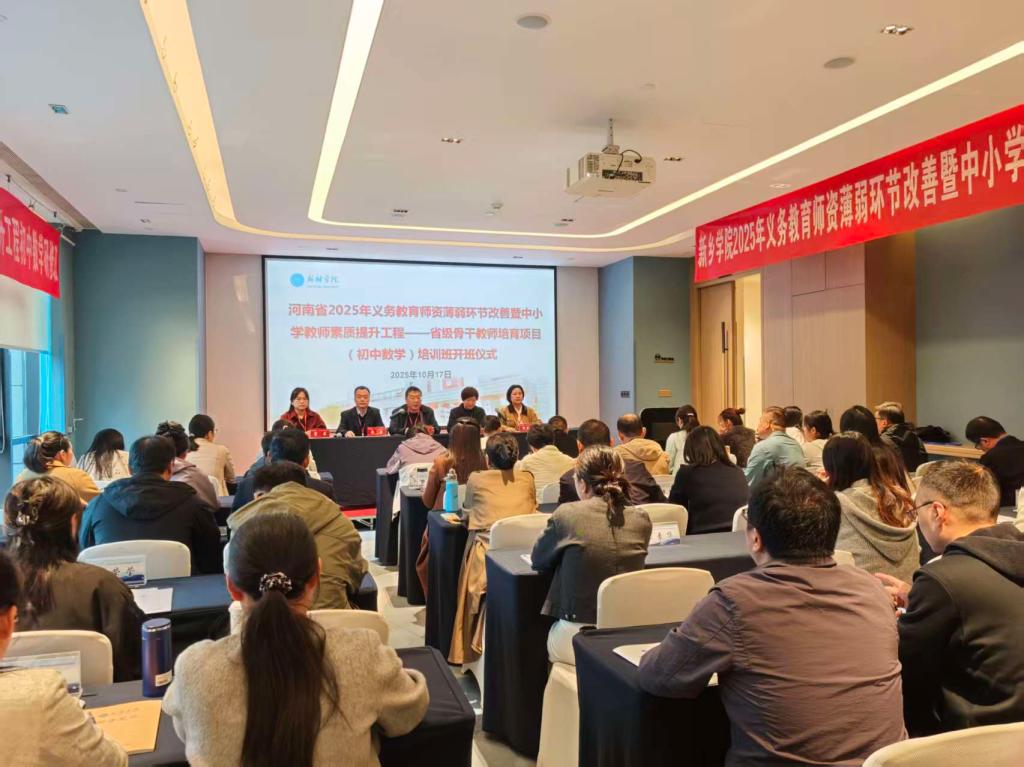 10月17日上午,由我校中小学教师校长研修院承办、数学与统计学院组织实施的“省培计划(2025)”初中数学骨干教师研修班在新乡艺悦宾馆举行了开班仪式。永利yl23411集团官网数学与统计学院院长张之正、中小学教师校长研修院副院长宋华、项目工作组全体成员以及研修班的83名参训教师参加了开班仪式。开班仪式由数学与统计学院副院长皮磊主持。