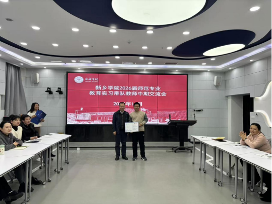 随后,还邀请了与会教学副院长分别为本届新选聘的4位教育实习带队教师颁发聘书并合影留念。