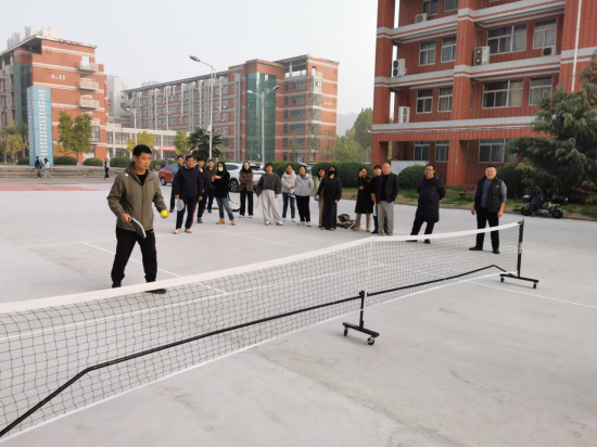 活动特别邀请了体育学院的付善勇和贵涛老师担任指导。两位老师从匹克球的起源发展、运动特点和基本规则等方面进行了深入浅出的讲解,并亲自示范了握拍、发球、击球等核心技巧。在随后的实操环节中,药学院的教师们热情高涨,纷纷走上球场,在两位老师的指导下练习。场上挥拍声、欢笑声此起彼伏,大家在轻松愉快的氛围中体验着匹克球的独特魅力,不仅锻炼了身体,更在互动中加深了彼此的情谊。