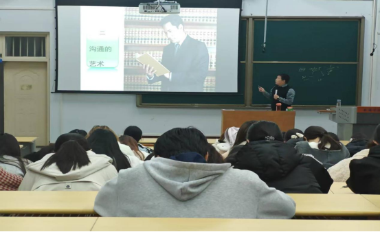 讲座伊始,于洪超以“沟通不畅引发的校园常见矛盾”为切入点,结合大学生在宿舍相处、团队协作、师生交流中的典型案例,生动阐释了有效沟通对构建和谐校园关系、促进个人心理成长的重要意义,瞬间引发在场学生的强烈共鸣。他提到,经济类专业学生未来将面临职场谈判、客户对接等高频沟通场景,当下培养沟通能力既是校园生活的需求,更是职业发展的基础。