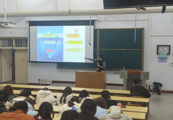 在核心内容讲解环节,于洪超从心理学视角系统拆解了人际沟通的底层逻辑。他引入“冰山理论”,将沟通需求分为表层的信息传递与深层的情感诉求,强调“真正的沟通不仅是‘说清楚’,更是‘被理解’”。针对沟通中的常见障碍,他分享了四大实用策略:一是打破认知落差,通过“换位思考三步法”建立共情;二是化解冲突矛盾,运用“非暴力沟通四要素”实现分歧和解;三是精准表达观点,采用“结论先行+分点阐述”的结构化模式;四是强化回应质量,掌握“积极倾听+有效反馈”的互动技巧。为让理论落地,老师还结合“分析型、驾驭型、亲和型、表现型”四种人格类型,讲解了差异化沟通的适配方法,使同学们学会根据沟通对象调整交流方式。