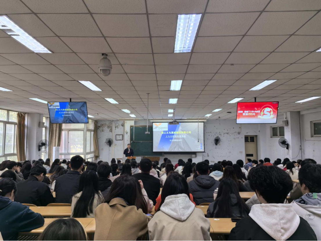 本次宣讲会不仅是一场行业知识的盛宴,更是一次高效的校企人才对接。据悉,义乌源威公司此次面向本校学子开放了包括外贸业务员、跨境电商运营、新媒体主播、美工设计、物流管理等在内的百余个实习及就业岗位。王景涛特别强调,公司注重“老带新”培养机制,设有“实习生-正式员工-主管-经理-合伙人”五级晋升通道,鼓励年轻人在实战中快速成长。