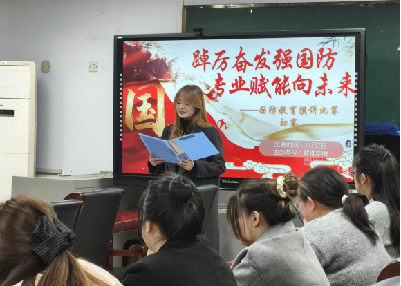 为深入贯彻《中华人民共和国国防教育法》,落实学校国防教育主题特色活动部署,11月3日,管理学院 “踔厉奋发向未来,专业赋能强国防” 主题演讲比赛初赛在学院会议室圆满举办,将管理学科优势与国防教育深度融合,吸引全院多名学生积极参与。