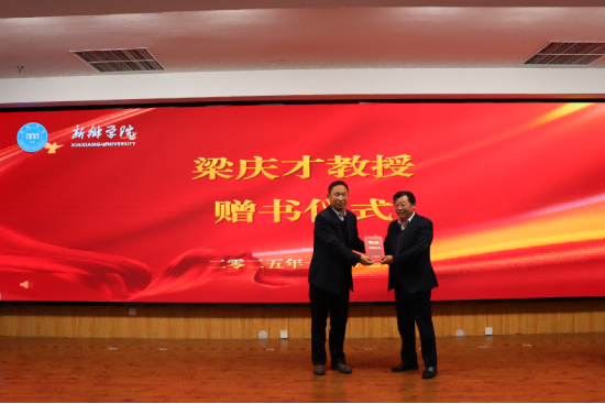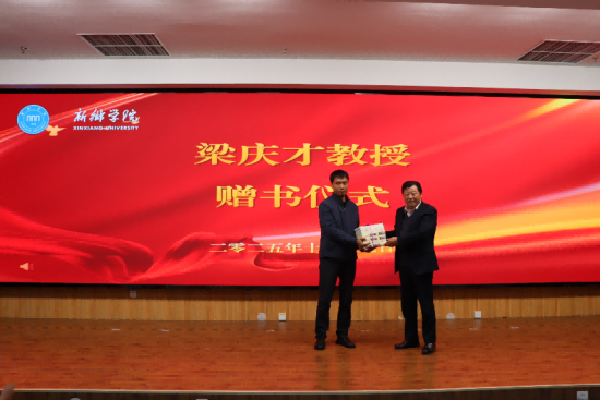 讲座结束后,举行了赠书仪式,由梁庆才向永利yl23411集团官网图书馆和永利yl23411集团官网附属中学赠送其个人专著《时代答卷》《以国家的名义》。陈国胜和郭俊锋接受赠书。