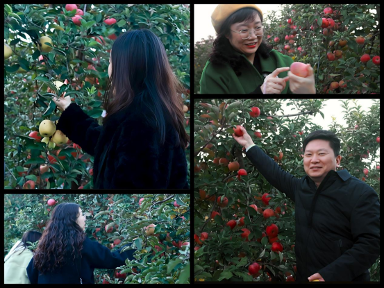 签约仪式后,学院一行前往封丘县边庄村开展“助农促振兴”主题实践活动。时值金秋,边庄苹果园内一片丰收景象。在秦昆的引导下,学院师生深入果园,参加采摘、采购苹果,既体验了农事劳作,也以消费促农增收,取得了良好实效。大家与果农亲切交流,详细了解苹果的种植技术与销售渠道,新闻传播学院师生更是发挥专业特长,现场策划并着手为边庄苹果制作宣传短片,以现代传媒手段助力品牌推广。