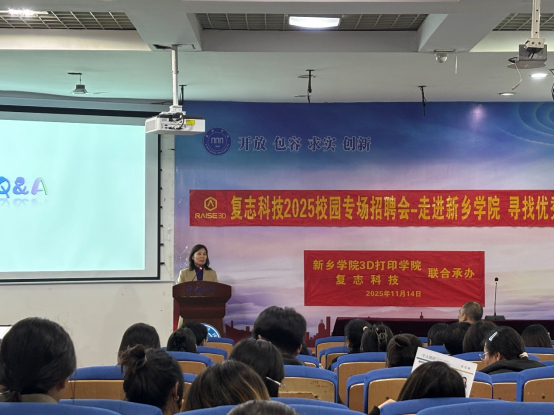 11月14日下午,3D打印行业头部企业上海复志信息科技股份有限公司在A05教学楼一楼报告厅举办2026届毕业生永利yl23411集团官网专场校园招聘会。上海复志信息科技股份有限公司董事长兼总经理封华、人力资源HRBP张兴旺、宁德分区业务经理刘敏,3D打印学院党委书记田文强、院长片春媛出席招聘宣讲会。3D打印学院就业专管老师、毕业班辅导员,入职复志科技的3D打印学院毕业生林桦杰、谷晓宇、张锐婷、袁泳江4位校友代表和2026届毕业班全体在校生参加招聘会。招聘宣讲会由上海复志信息科技股份有限公司人力资源HRBP张兴旺主持。