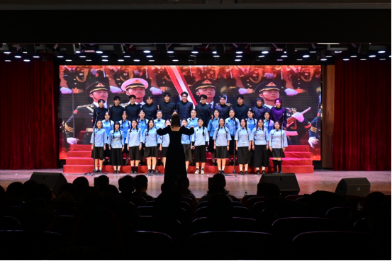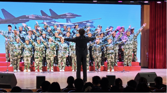 比赛中,经典红色曲目轮番上演。《松花江上》悠悠旋律,诉说山河破碎的悲痛与抗争坚毅;《在太行山上》激昂节奏,展现抗日军民豪迈气魄与必胜信念;《十送红军》深情演绎,重温军民鱼水情;《游击队之歌》活泼曲调,传递战斗机智乐观;《保卫黄河》磅礴气势,似黄河怒涛奔涌,奏响抗日铿锵战歌;《祖国不会忘记》深情礼赞,致敬默默奉献的赤诚担当;《国家》温情诠释,诉说家国相依的深厚情怀;《强军战歌》铿锵有力,彰显保家卫国的强军意志;《向往》昂扬向上,传递逐梦前行的美好憧憬;《走向复兴》恢弘壮阔,唱响奋进新时代的豪迈誓言。各班级凭借专业演唱技巧、饱满情感表达,让红色精神在歌声中熠熠生辉,将现场气氛推向一个又一个高潮。