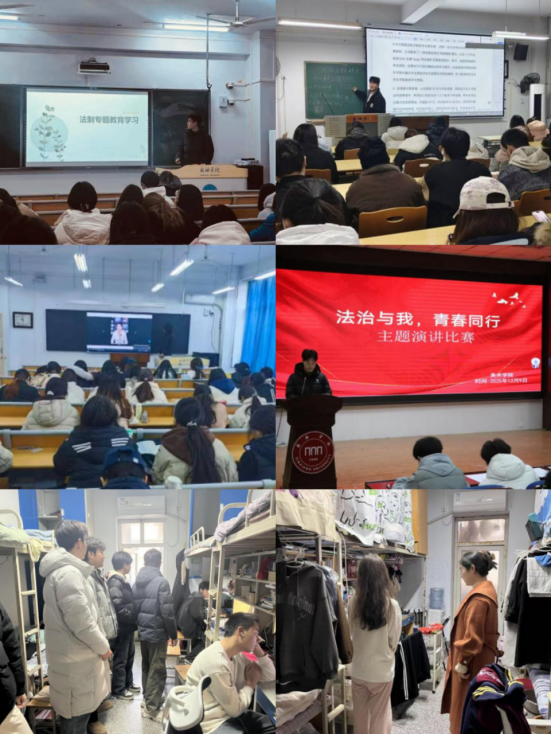 自12月以来,学院以班级为单位广泛开展法治主题班会。班会紧扣校园欺凌、网络安全、权益保护等与学生成长发展密切相关的议题,通过剖析大学生违法犯罪典型案例,以案说法、以案释法、以法说理,帮助学生厘清法律边界、增强法治素养,引导学生自觉尊法、学法、守法、用法。
