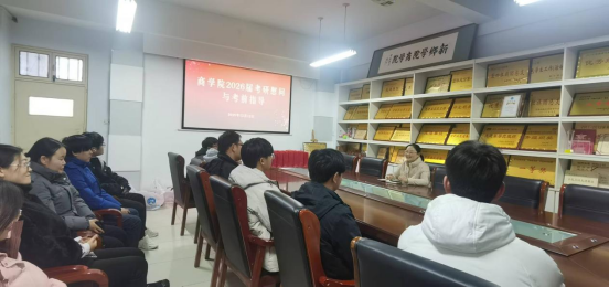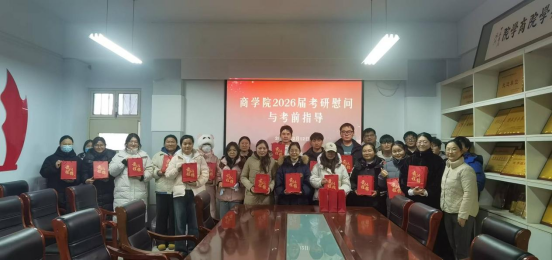 12月12日下午,商学院在学院会议室举办2026届考研学生慰问暨考前指导会,为即将奔赴考场的学子们送上暖心关怀与专业指导。商学院党委副书记李雅林、科研秘书裴子漪以及2026届考研学生代表参加了活动。