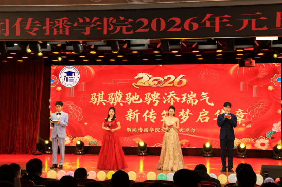 晚会现场气氛热烈,节目衔接流畅,舞美效果生动,赢得了在场领导、老师和同学们的一致好评。这场充满专业特色与新年喜庆氛围的晚会,不仅展现了新闻传播学院积极向上的精神风貌,也传递出全院师生携手同心、奔向未来的坚定信心。2026年将至,新传人将继续秉承初心,在新闻传播实践与时代叙事创新的道路上驰而不息,以昂扬姿态书写属于新时代的奋进故事。