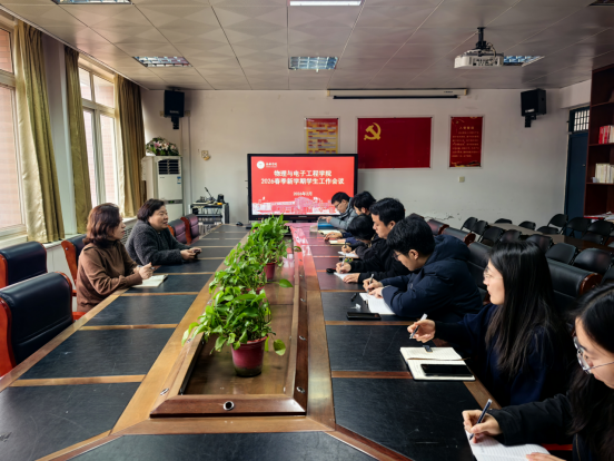 春风浩荡,万物竞发。伴随着丙午马年的奔腾蹄音,2月27日上午,物理与电子工程学院在A09号楼四楼会议室召开2026年春季新学期学生工作会议。学院党委书记张晓蕊、党委副书记王玉平及全体辅导员参加会议,共同擘画新学期育人工作新蓝图。会议由王玉平主持。