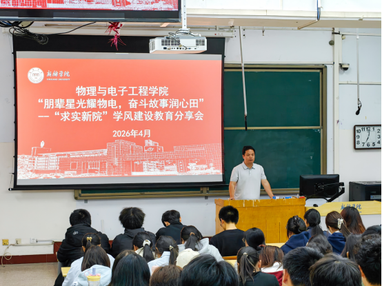4月20日,物理与电子工程学院在A01-119多媒体教室举办“朋辈星光耀物电 奋斗故事润心田”学风建设教育分享会。本次分享会聚焦考研升学与高质量就业两大主题,特别邀请2022级在考研和国家电网招录中取得优异成绩的学生代表担任主讲成员。分享会由物理与电子工程学院党委书记张晓蕊、副书记王玉平、全体辅导员老师、优秀学生代表以及各年级学生代表共计260余人齐聚一堂,共同聆听奋斗故事,汲取前行力量。