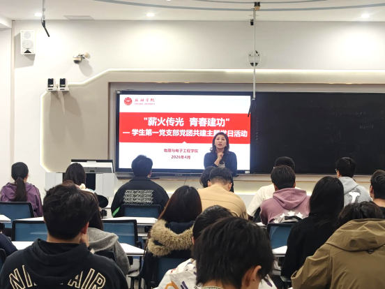 为充分发挥基层党支部的战斗堡垒作用,深化党建带团建工作,4月21日下午,物理与电子工程学院学生第一党支部在A05-203教室开展“薪火传光 青春建功”党团共建主题党日活动。学院党委副书记王玉平出席活动,学生第一党支部、2024级物理学团支部全体成员参加活动,活动由学生第一党支部书记马广彬主持。