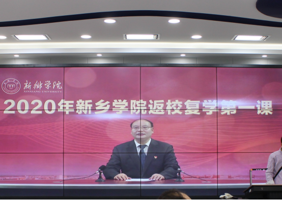 5月13日8时30分,第一批返校的学生已经坐在经过仔细消杀的教室,按照事先布置好的、不少于1米的座位间隔学习《省教育厅厅长郑邦山寄语广大师生》视频和《河南省开学第一课》视频;暂未返校的15000余名当时无课同学通过超星学习通同步进行了在线学习,全体师生以视频直播方式同上“返校复学第一课”。