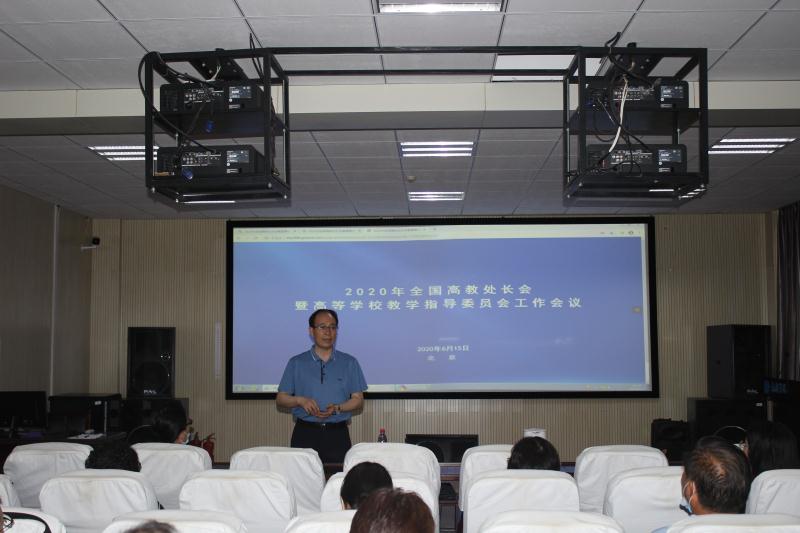 6月15日下午3:00,我校在A07-501会议室组织收看了2020年全国高教处长会暨高等学校教学指导委员会网络视频会议。副校长王选年,教务处全体人员,各学院院长、教学副院长及教学秘书80余人参加了学习。